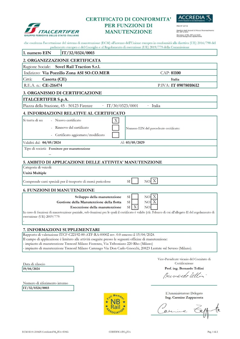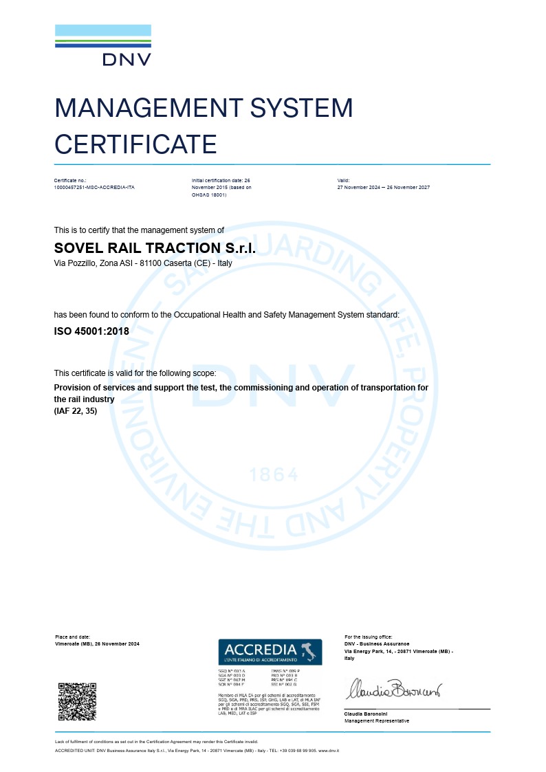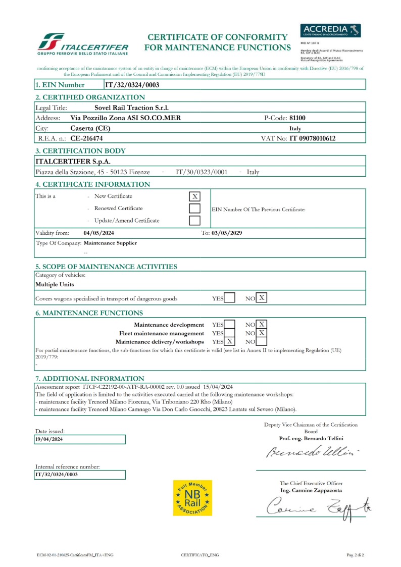 In conclusione la Sovel Rail Traction ha la ferma volontà di continuare ad investire per raggiungere l’eccellenza dei suoi servizi e contribuire sempre di più a creare una mobilità aperta a tutti, green e sostenibile.