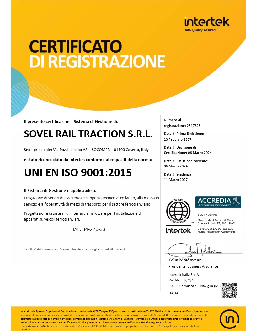 “Sovel Rail Traction contribuisce alla mobilità sostenibile nel trasporto su rotaia, oltre a garantire la sicurezza ed il comfort degli utenti, attraverso le proprie competenze.”